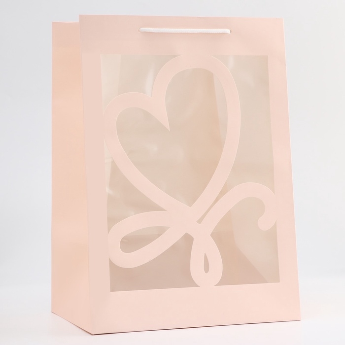 Этот нежный крафтовый бумажный пакет с фигурным окном в форме сердца создан для тех, кто ценит уют и романтику.