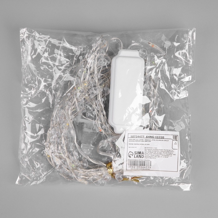 Гирлянда «Нить» 5 м роса с насадками «Шарики», IP20, нить серебристая, 50 LED, 8 режимов, свечение мульти, 220 В