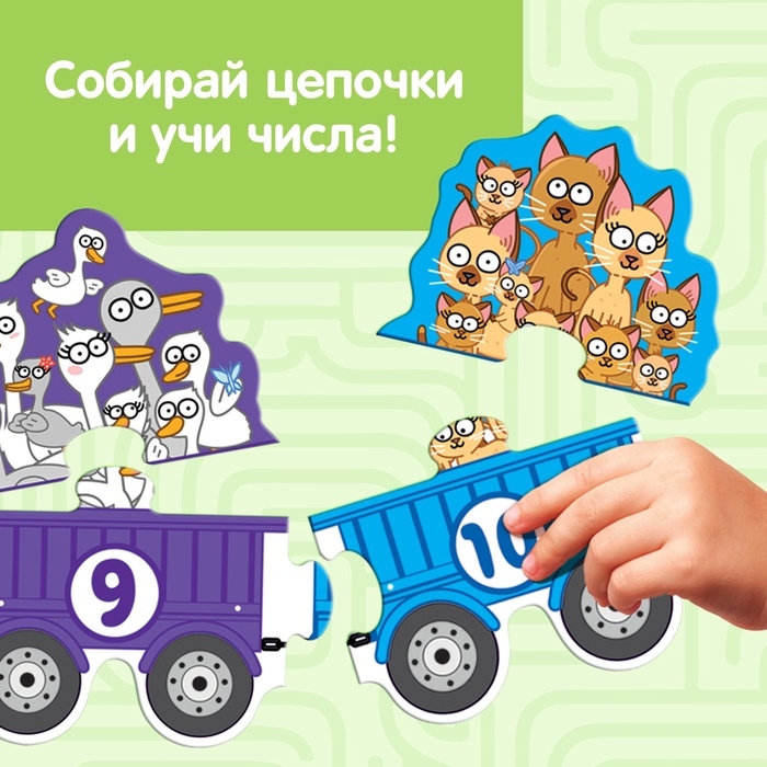 Играя с пазлами, ваш ребёнок будет прокачивать мелкую моторику и логическое мышление. Собирая цепочки с числами, малыши обучаются элементарным математическим навыкам, которые станут основой для дальнейшего обучения. Включение в процесс любимых героев делает занятия с цифрами неожиданно приятными и энергичными.