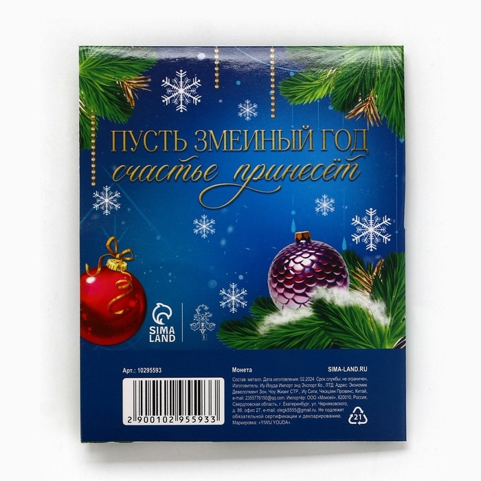Монета новогодняя "Новогодних чудес", диам. 4 см