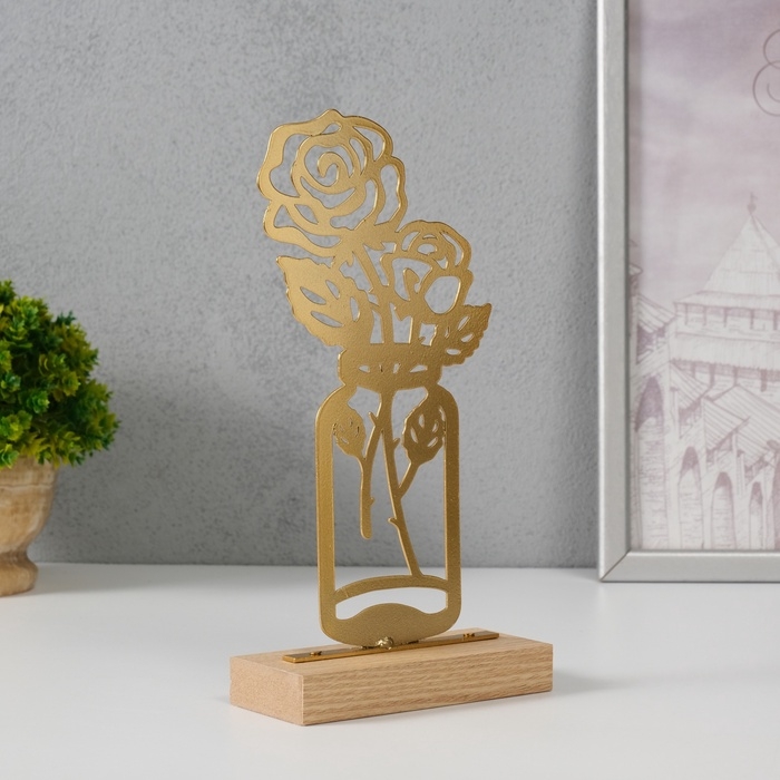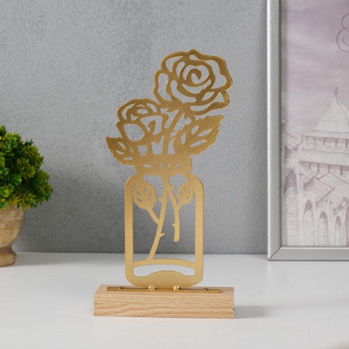 Сувенир металл "Розы в банке" золото 5х11,5х22 см