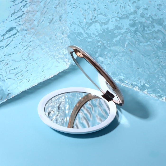 Зеркало складное «Узор», d = 9 см, цвет белый/розовое золото