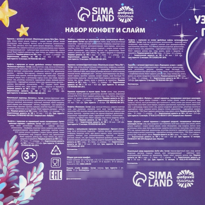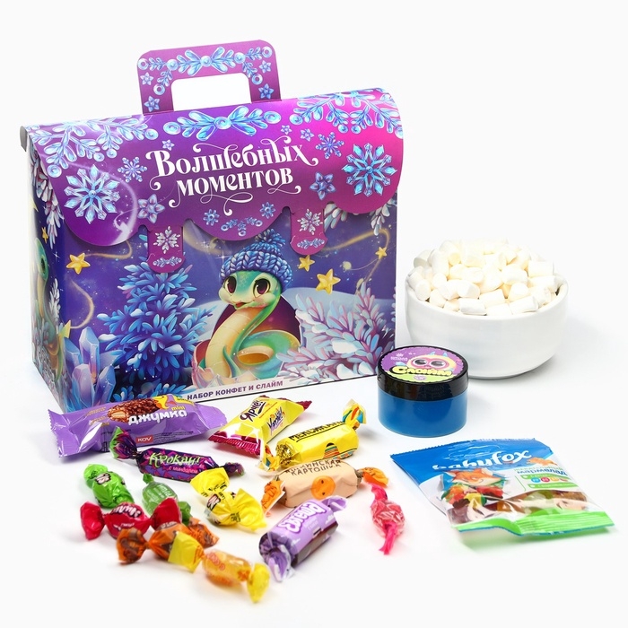 Новогодний подарок, сладкий, детский «Волшебных моментов», конфеты + слайм, 500 г