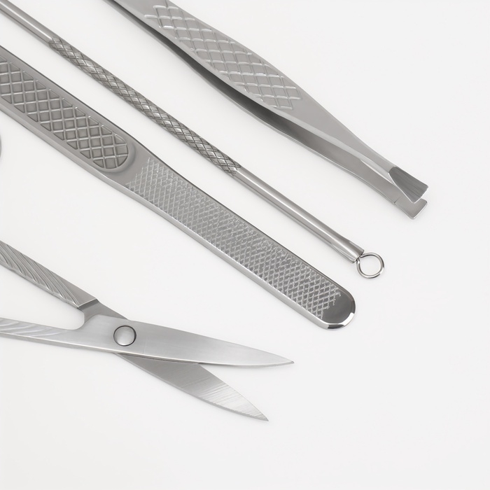 Набор маникюрный «С ЗАБОТОЙ», 6 предметов, в футляре, в PVC - коробке, цвет серый