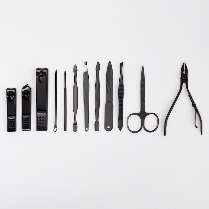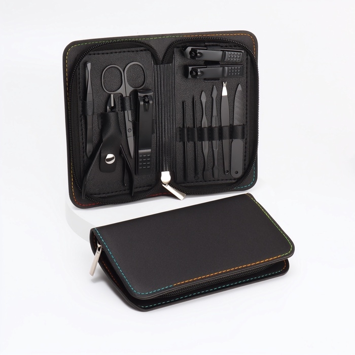 Набор маникюрный, 12 предметов, в футляре, чёрный