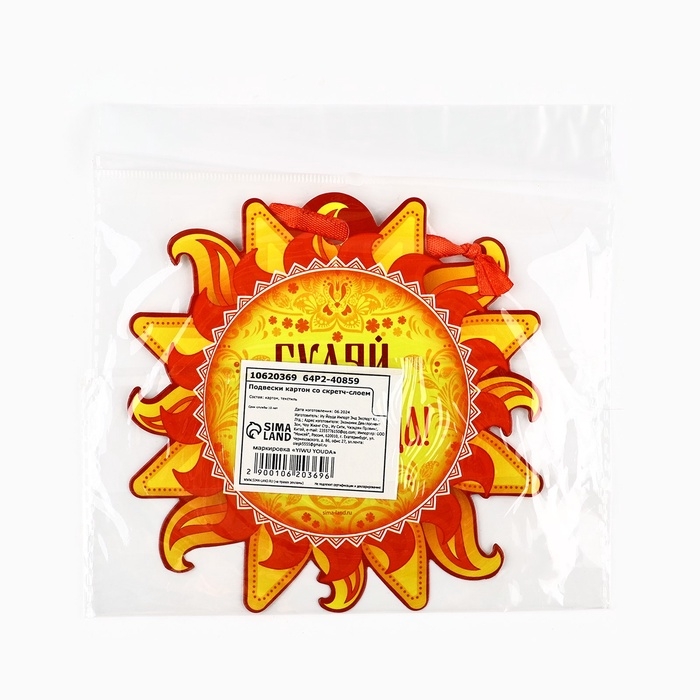 Подвеска картонная «Солнышко» со скретч-слоем, 13 х 13 см