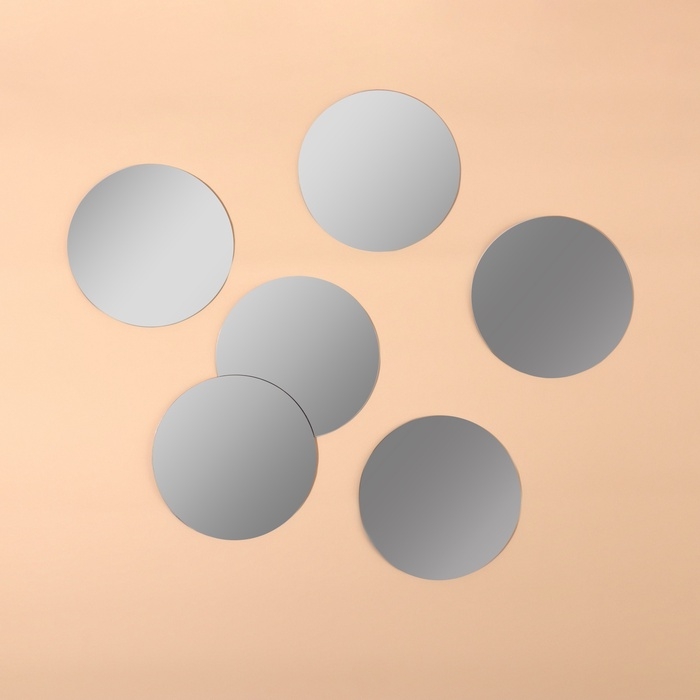 Интерьерные зеркала для декорирования, без рамы, набор - 6 шт, d = 8 см