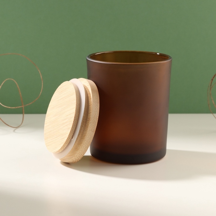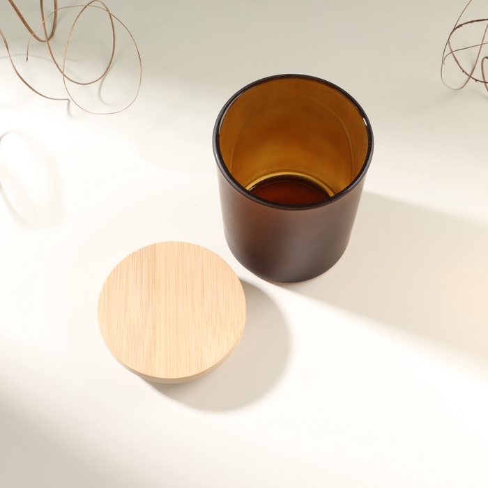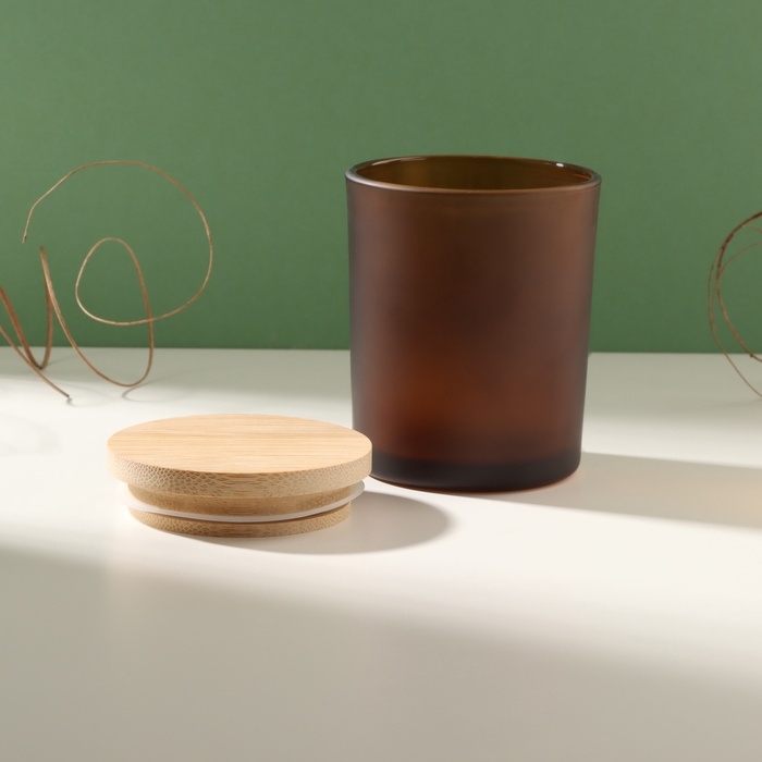Банка для свечей стекло с крышкой "Коричневая полуматовая" 220 мл 7х7х8,4 см