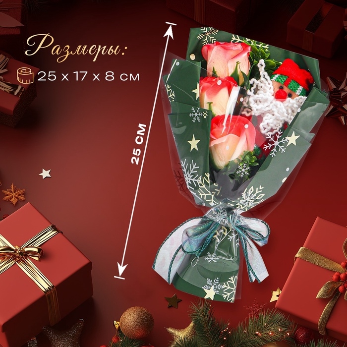 Подарите магию новогодних праздников и насладитесь красотой и уютом с нашим букетом мыльных красных роз с Дедом Морозом!