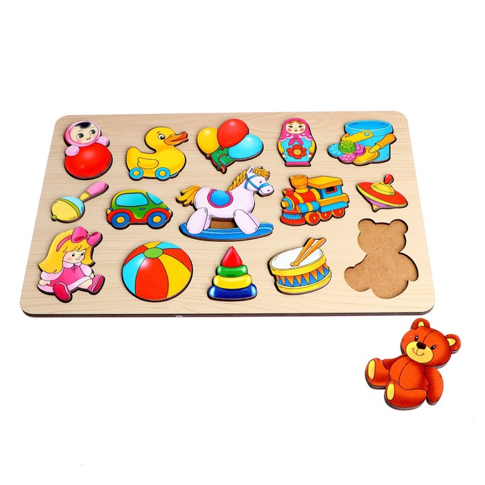 - Мелкой моторики: извлекая и вставляя фигурки, малыш тренирует ловкость и координацию движений пальчиков.