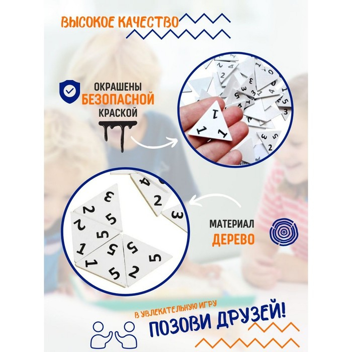 Тройное домино — это усложнённая версия классической и многими любимой игры. Она подойдёт для 2–6 человек. Играйте в треугольное домино способами, указанными в правилах игры, или придумайте собственные правила!