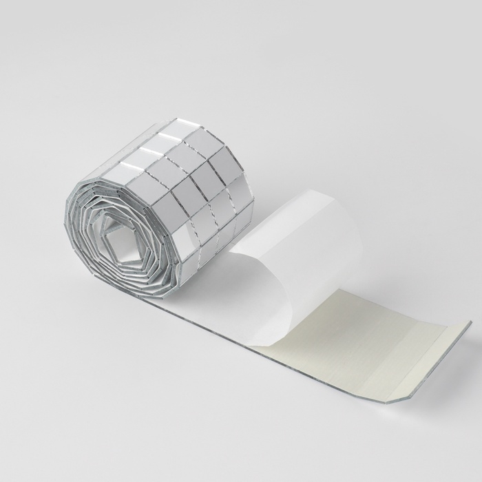 Зеркальная мозайка клеевая, 1 × 1 см, 4 ряда 4 см × 1 м, серебряное стекло