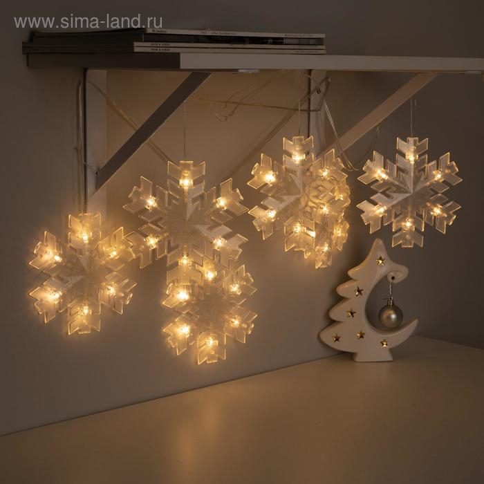 Гирлянда «Нить» 2 м с насадками «Снежинка матовая», IP20, прозрачная нить, 36 LED, свечение тёплое белое, 220 В