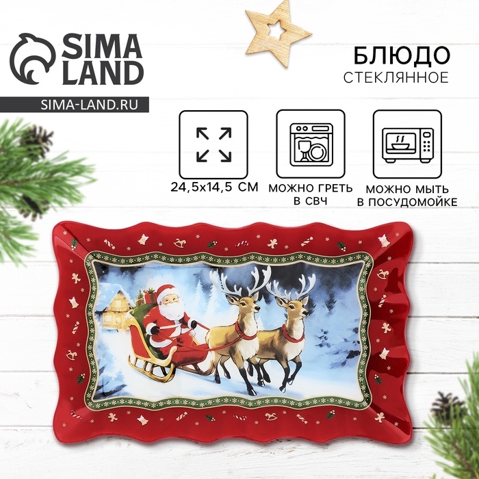 Блюдо стеклянное новогоднее Дорого внимание «Новогодняя сказка», 24,6 х 14,7 см