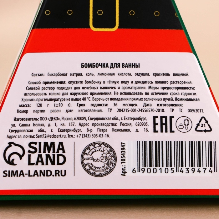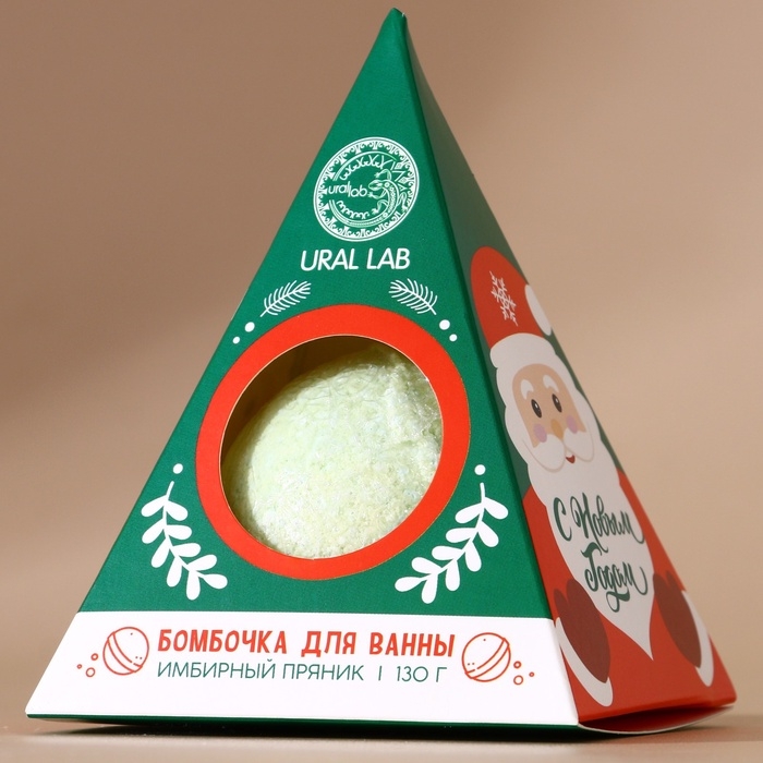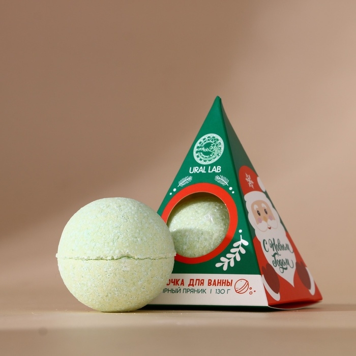 Бомбочка для ванны URAL LAB, 120 г, аромат имбирного пряника, Новый Год