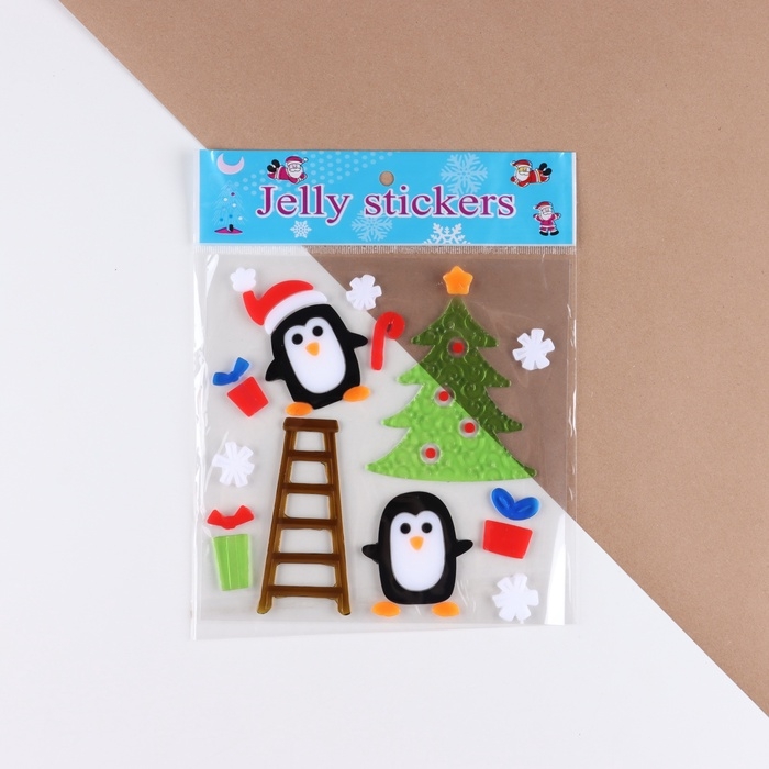 Наклейки на окна "Новогодние" пингвины, ель, 20 х 20 см