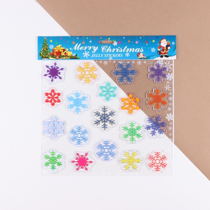 Наклейки на окна "Новогодние" разноцветные снежинки, 28 х 25 см