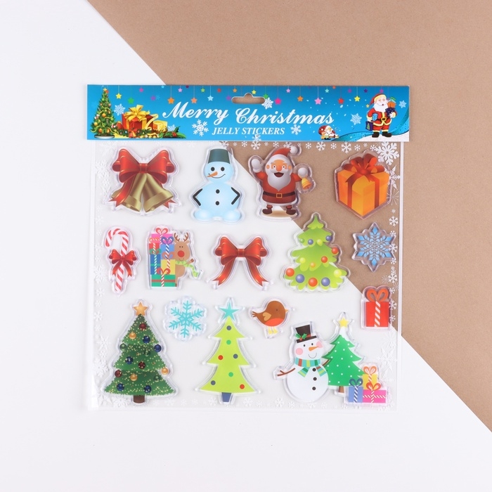 Наклейки на окна "Новогодние" Дед Мороз, елки, снеговики, 28 х 25 см