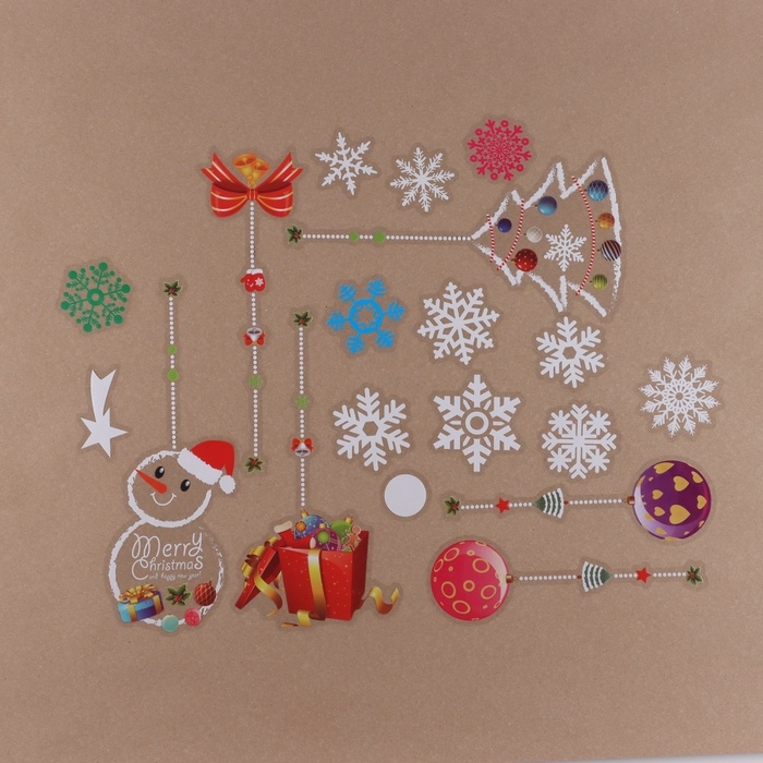 Наклейки на окна "Новогодние" домики, Дед Мороз, снеговики, 2 штуки, 35 х 50 см