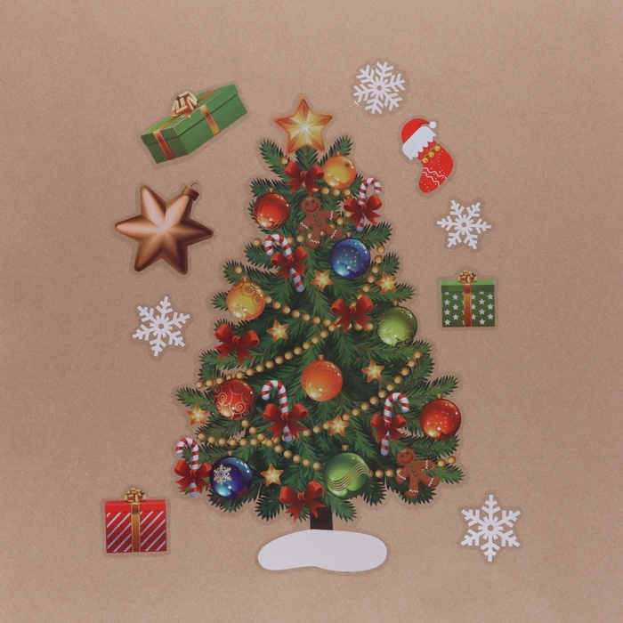 Наклейки на окна "Новогодние" елка, снежинки, 2 штуки, 35 х 50 см