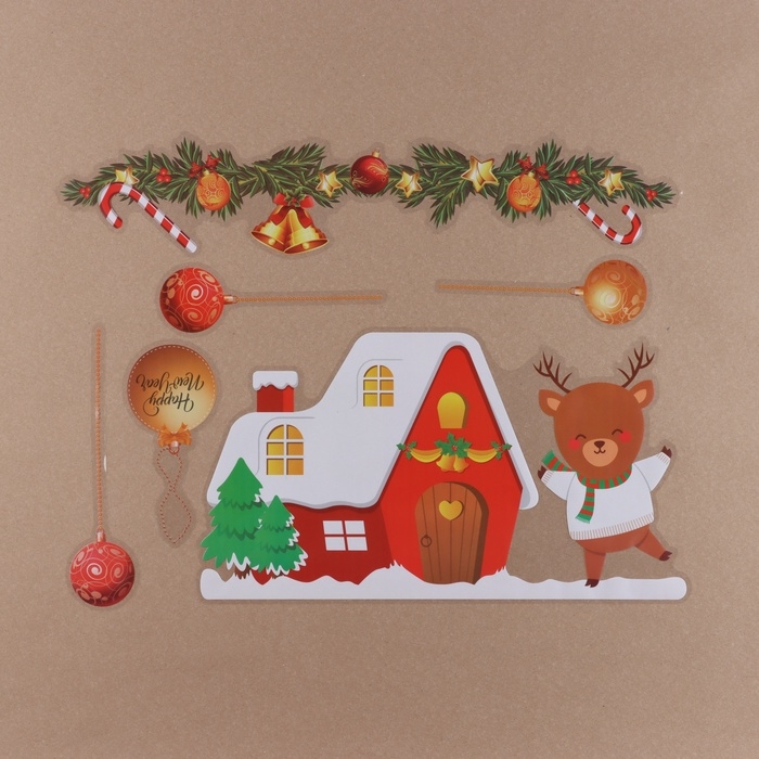 Наклейки на окна "Новогодние" домик, снеговик, 2 штуки, 35 х 50 см