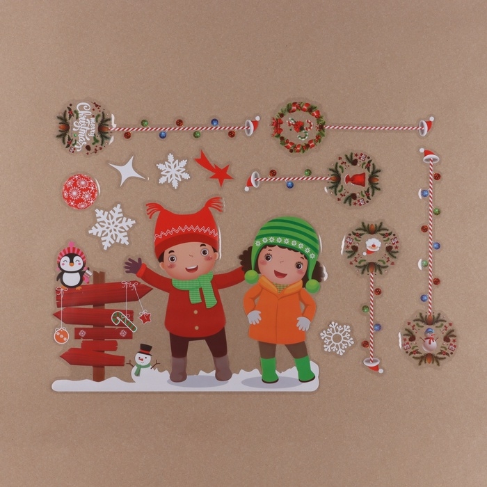 Наклейки на окна "Новогодние" снежики, медведь, 2 штуки, 35 х 50 см
