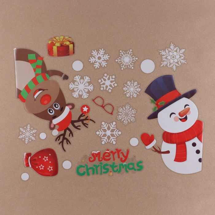 Наклейки на окна "Новогодние" снеговики, олень, 2 штуки, 35 х 50 см