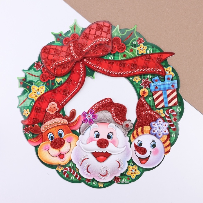 Плакат на стену "Новогодние" венок, Дед Мороз, 38 х 38 см
