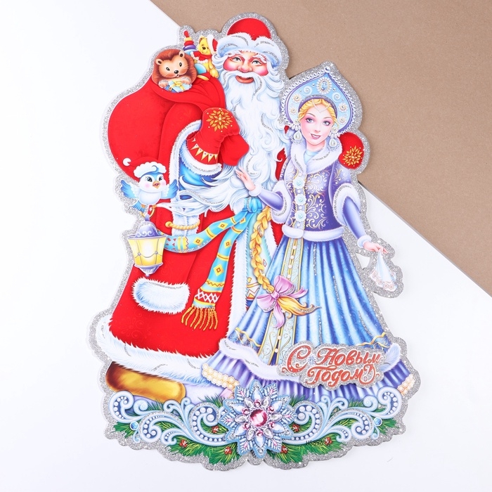 Плакат на стену "Новогодние" Дед Мороз, Снегурочка 40 х 52 см