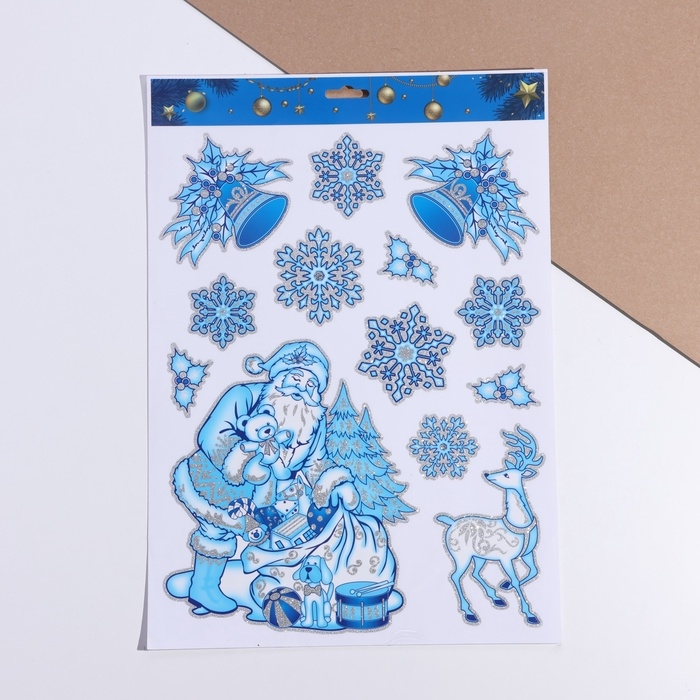 Набор наклеек "Новогодние" Дед Мороз, олень, 29 х 41 см