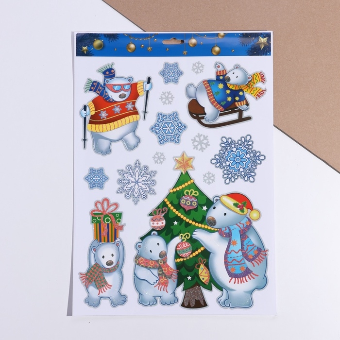 Набор наклеек "Новогодние" медведи, 29 х 41 см
