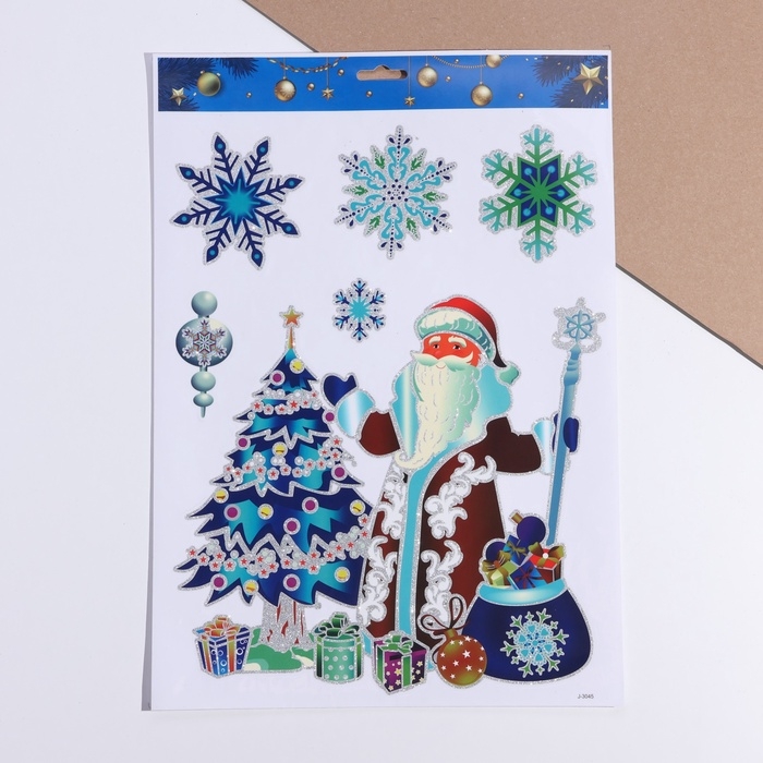 Набор наклеек "Новогодние" Дед Мороз. елка 29 х 41 см