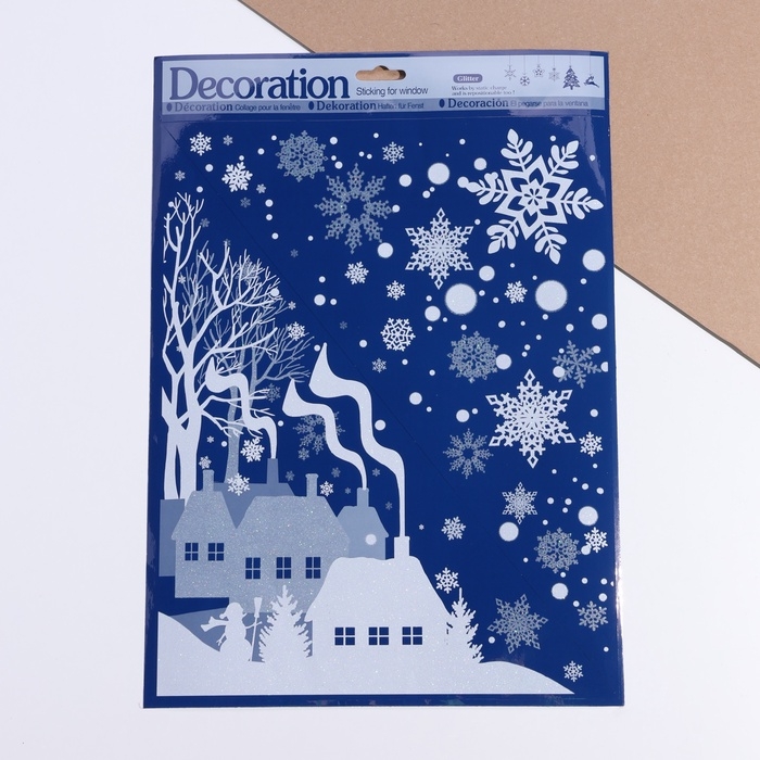 Набор наклеек "Новогодние" дома, деревья, снег, 30 х 38 см