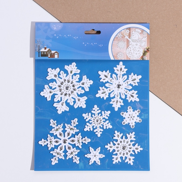 Набор наклеек "Новогодние" белые снежинки, 18 х 24 см
