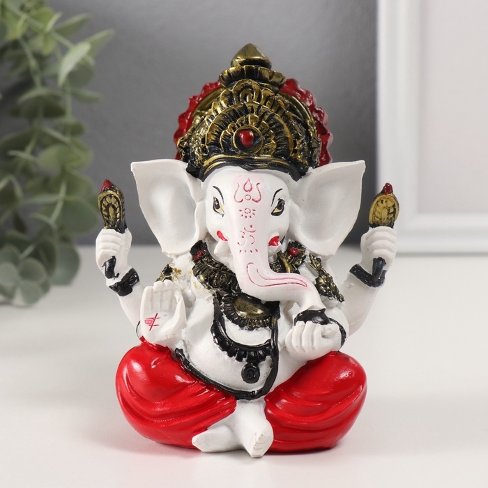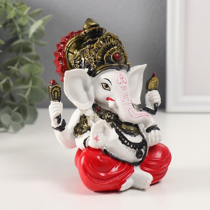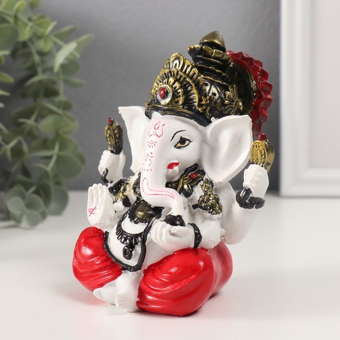 Сувенир полистоун "Ганеша в позе лотоса, в красных шароварах" 10х10х12,5 см