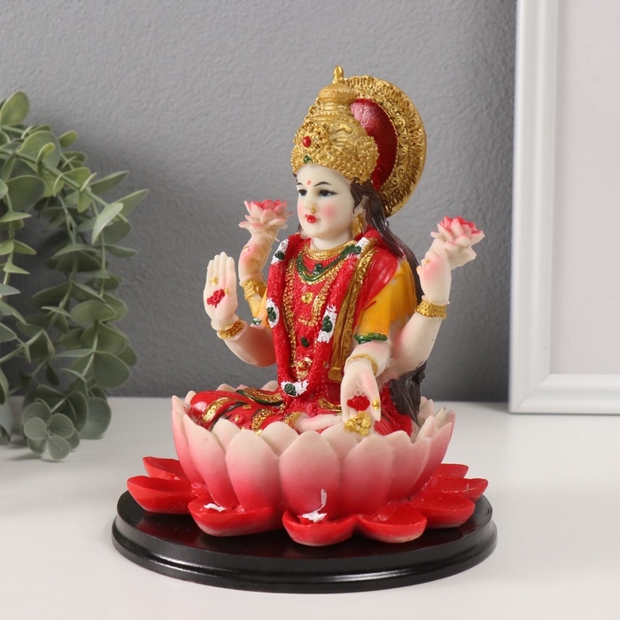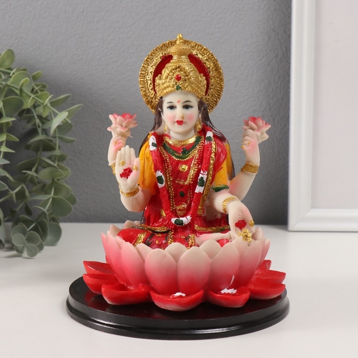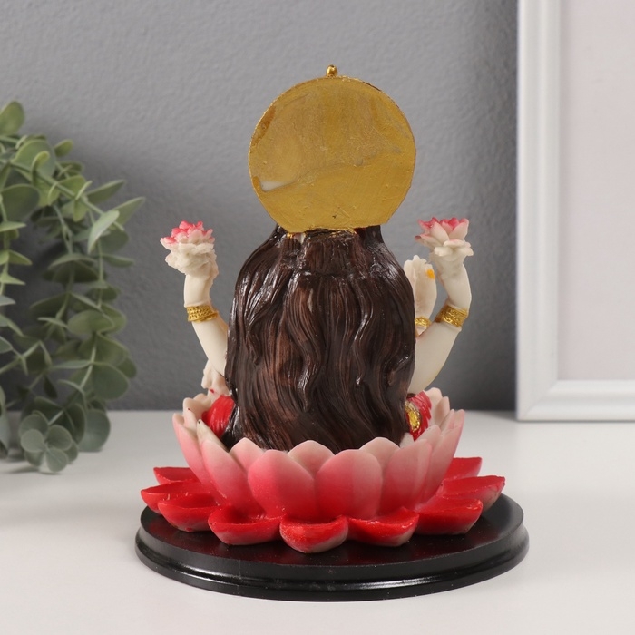 Сувенир полистоун "Лакшми в лотосе" красный 14,5х14,5х17,5 см