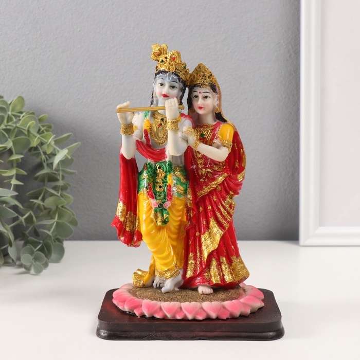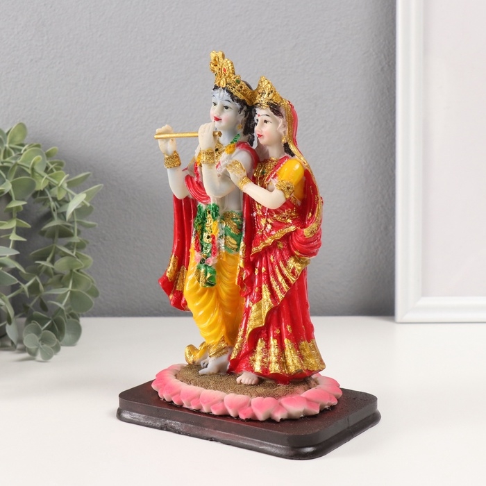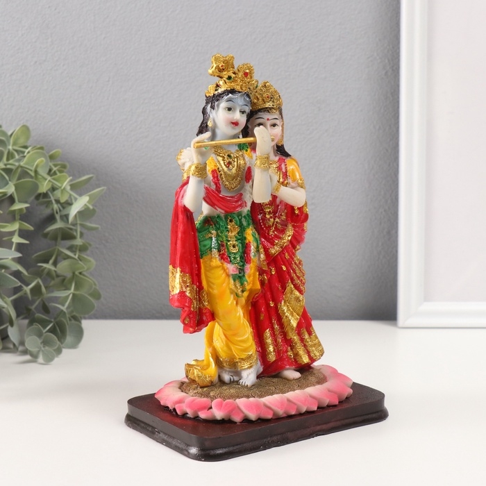 Сувенир полистоун "Радха и Кришна" красно-жёлтый 10,5х13х22 см