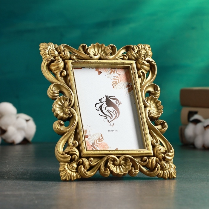 Фоторамка "Растительный орнамент" 10х15см/21,5х16см, бронза с позолотой