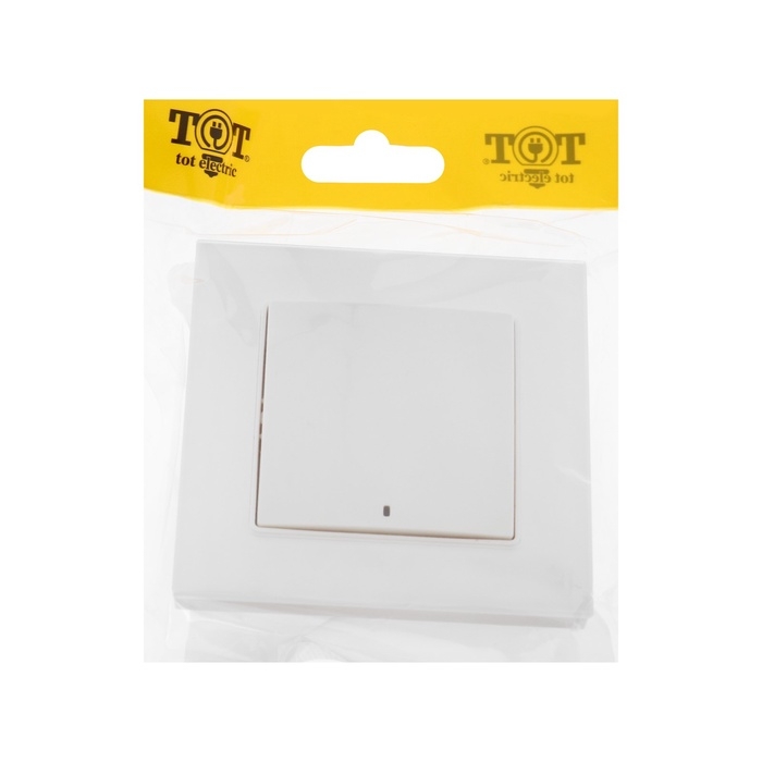 Выключатель TOT Glossy Glass, 10 А, 1 клавиша, с подсветкой, скрытый, стекло, белый