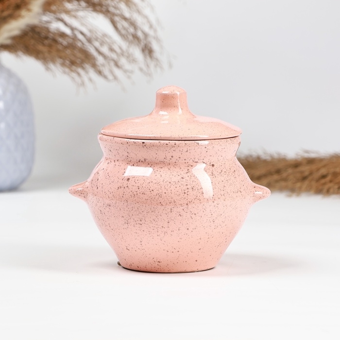 Горшок керамический для запекания №5 с ручками, 0,5л / 10,5х10см, фламинго