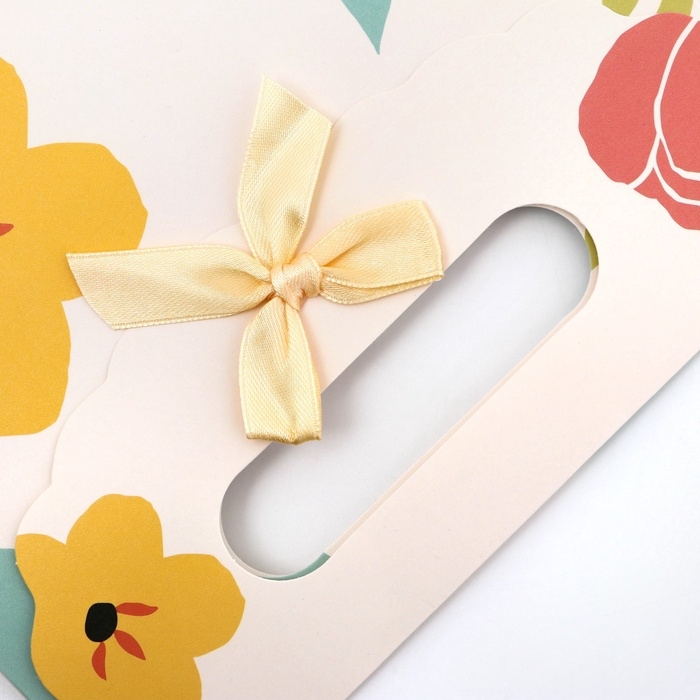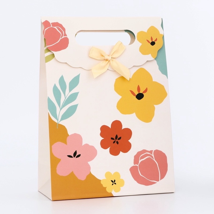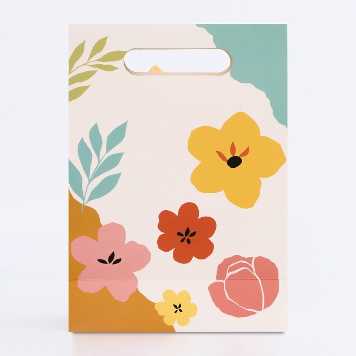 Подарочная коробка-пакет, упаковка с вырубной ручкой, "Цветочки" , 19 х 9 х 27 см