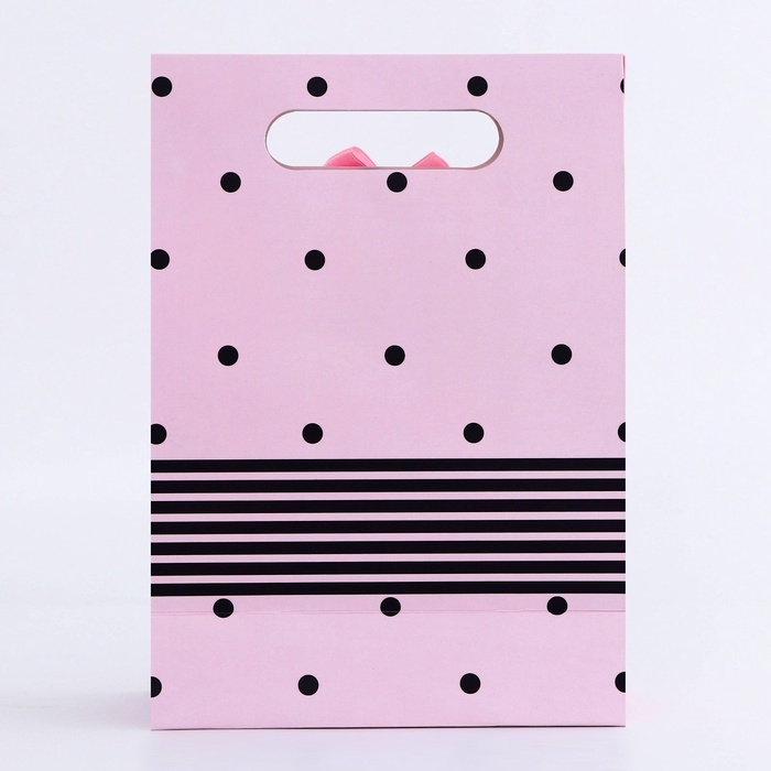 Подарочная коробка-пакет, упаковка с вырубной ручкой, "Розовый горох" , 19 х 9 х 27 см