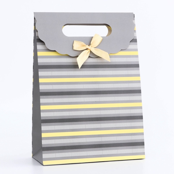Подарочная коробка-пакет, упаковка с вырубной ручкой, "Прямые линии" , 19 х 9 х 27 см