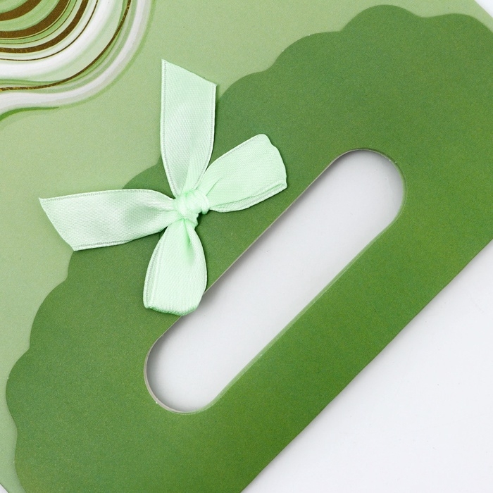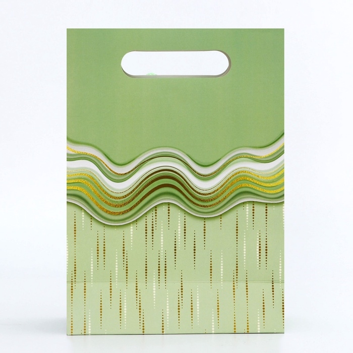 Подарочная коробка-пакет, упаковка с вырубной ручкой, "Зеленая грация" , 19 х 9 х 27 см
