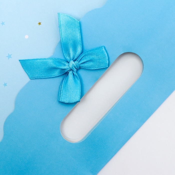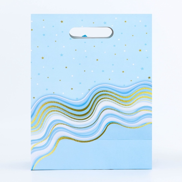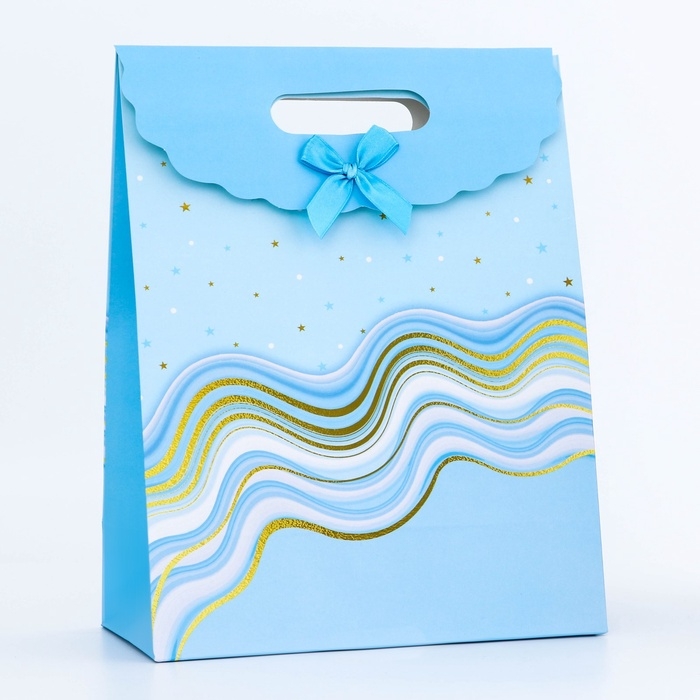 Подарочная коробка-пакет, упаковка с вырубной ручкой, "Голубая грация" , 24 х 12 х 31 см