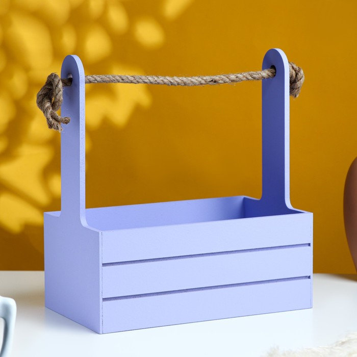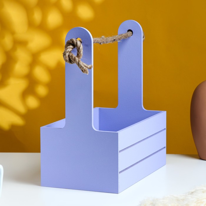 Кашпо деревянное 25.5×15×30 см "Аром", ручка канат, лаванда