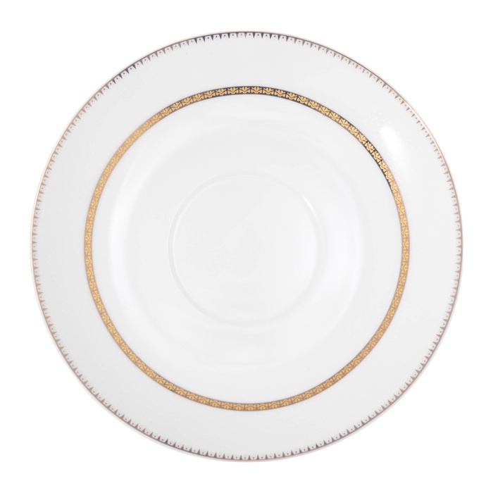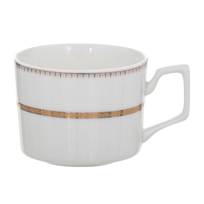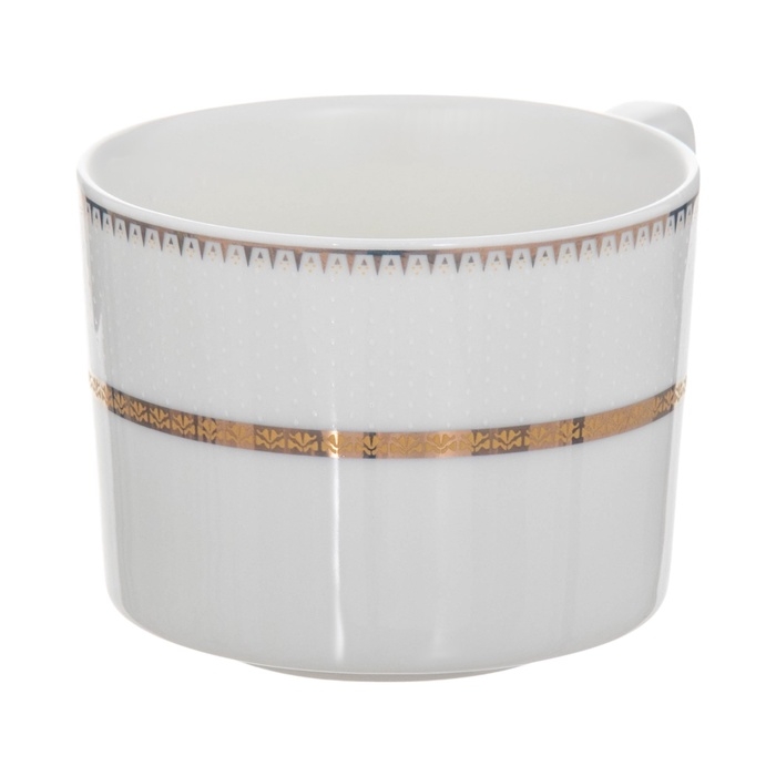 Сервиз состоит из шести элегантных кружек объемом 250 мл и шести соответствующих блюдец диаметром 15,5 см. Белоснежная основа сервиза и тонкая золотая окантовка создают нежный и роскошный образ, делая каждое чаепитие особенным.
