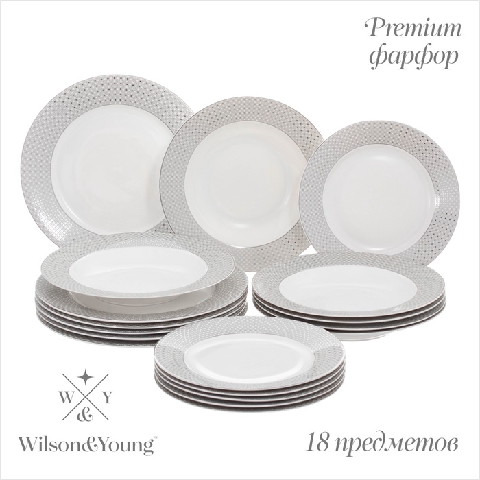 Набор посуды WY Eternal, 18 предметов, 6 тарелок d=25,5 см, 6 тарелк d=20,5 см, 6 глубоких тарелок d=23 см, фарфор