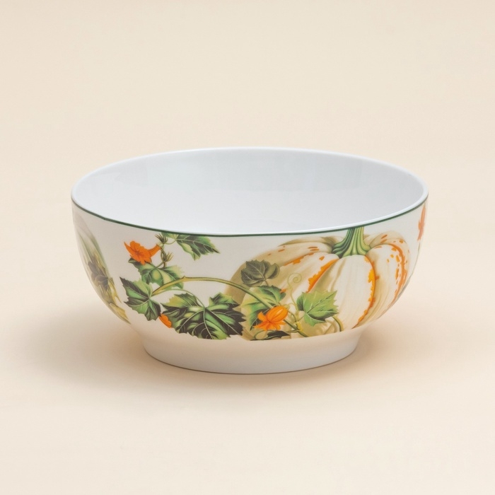 Изготовленный из качественного фарфора, этот салатник радует глаз чистым белым цветом и гладкой текстурой. Яркий рисунок с осенней тематикой создаёт атмосферу праздника, делая каждый прием пищи особенным.