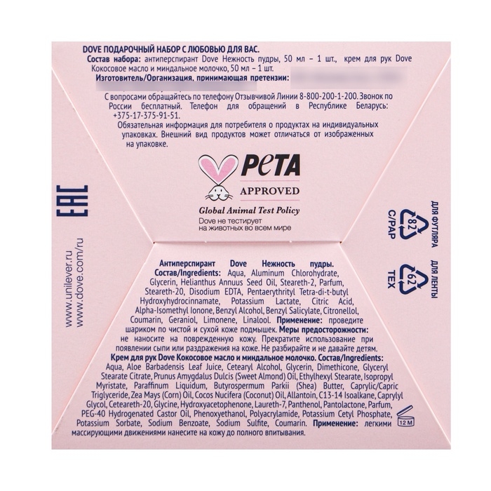 Подарочный набор женский DOVE "С любовью для вас": крем для рук, 50 мл + дезодорант, 50 мл